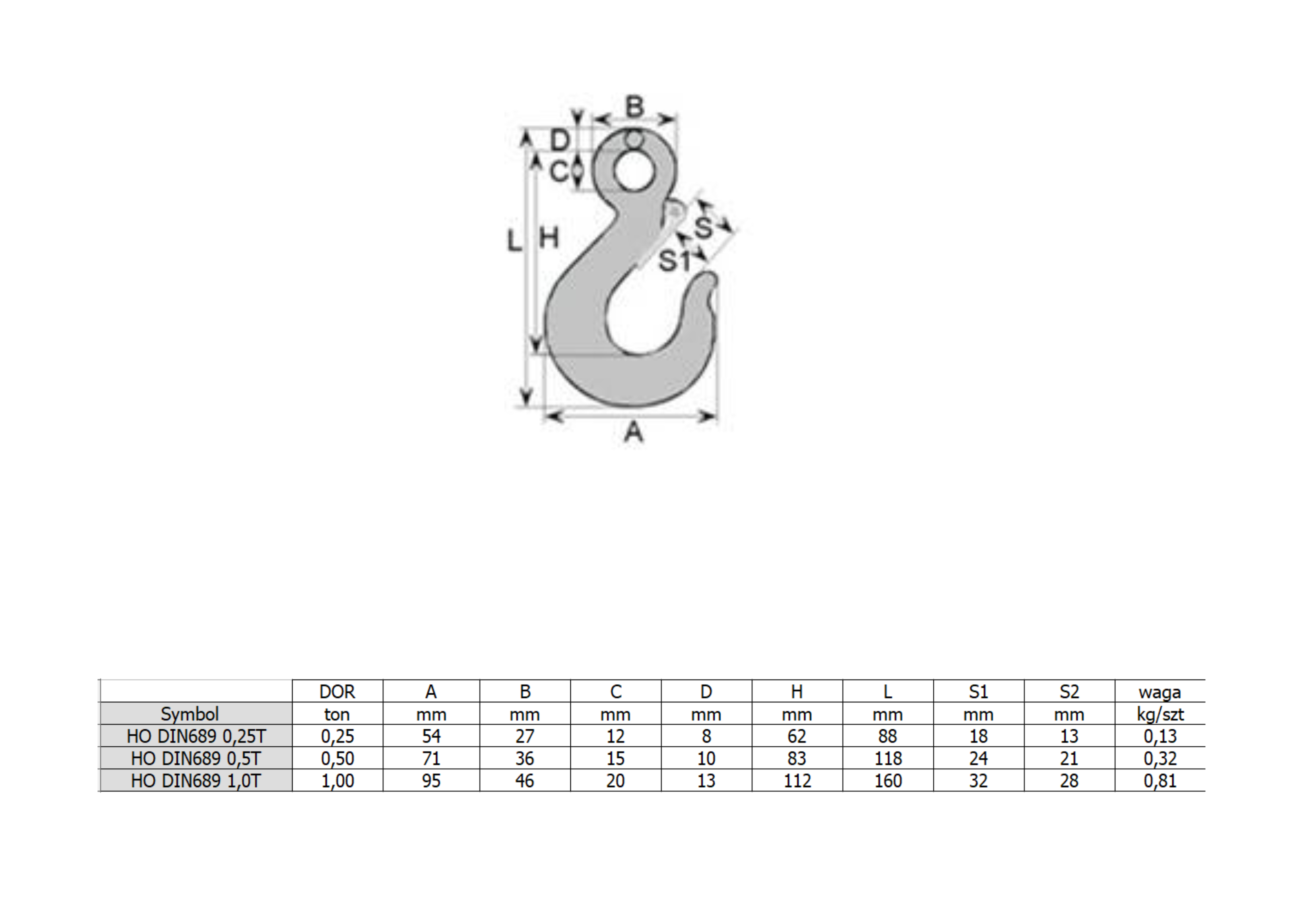 Hak Oczkowy Typ DIN 689 Ocynkowany DOR 0,25 tony