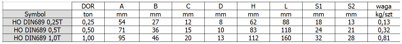 Hak Oczkowy Typ DIN 689 Ocynkowany DOR 1,0 tona