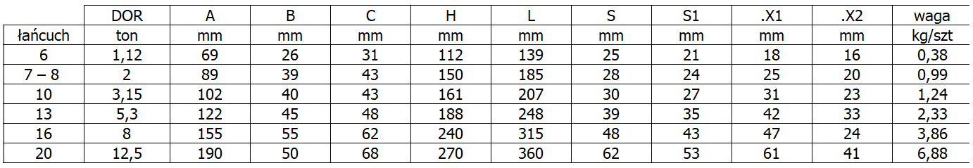 | Zastosowanie | do zawiesi łańcuchowych i linowych |