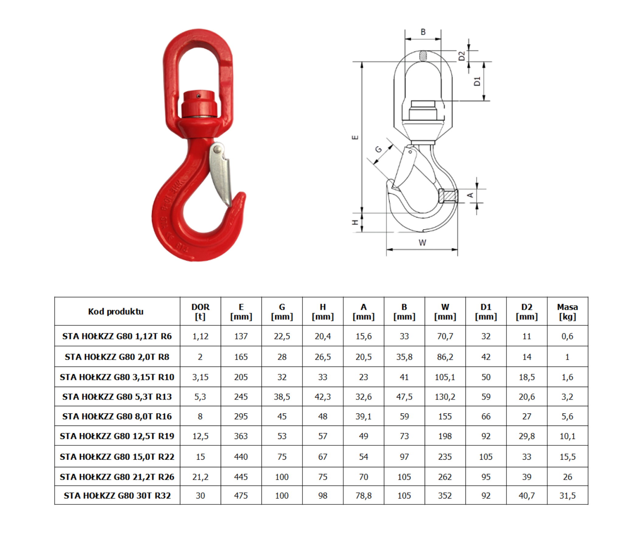 Hak obrotowy z łożyskiem kulkowym klasy 8 DOR 8 ton CE
