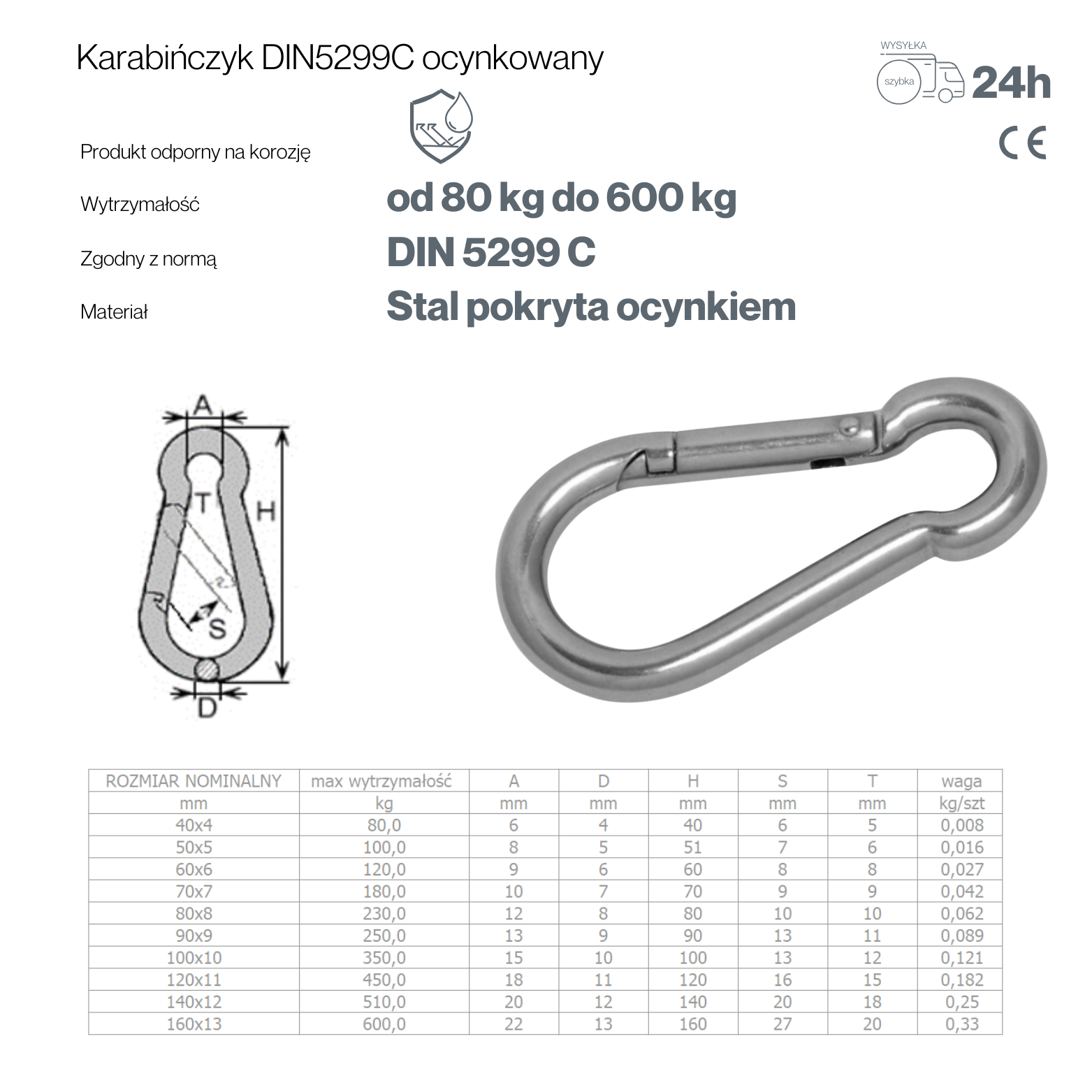 Karabińczyk wg DIN 5299 C ocynkowany 40x4 do 80kg