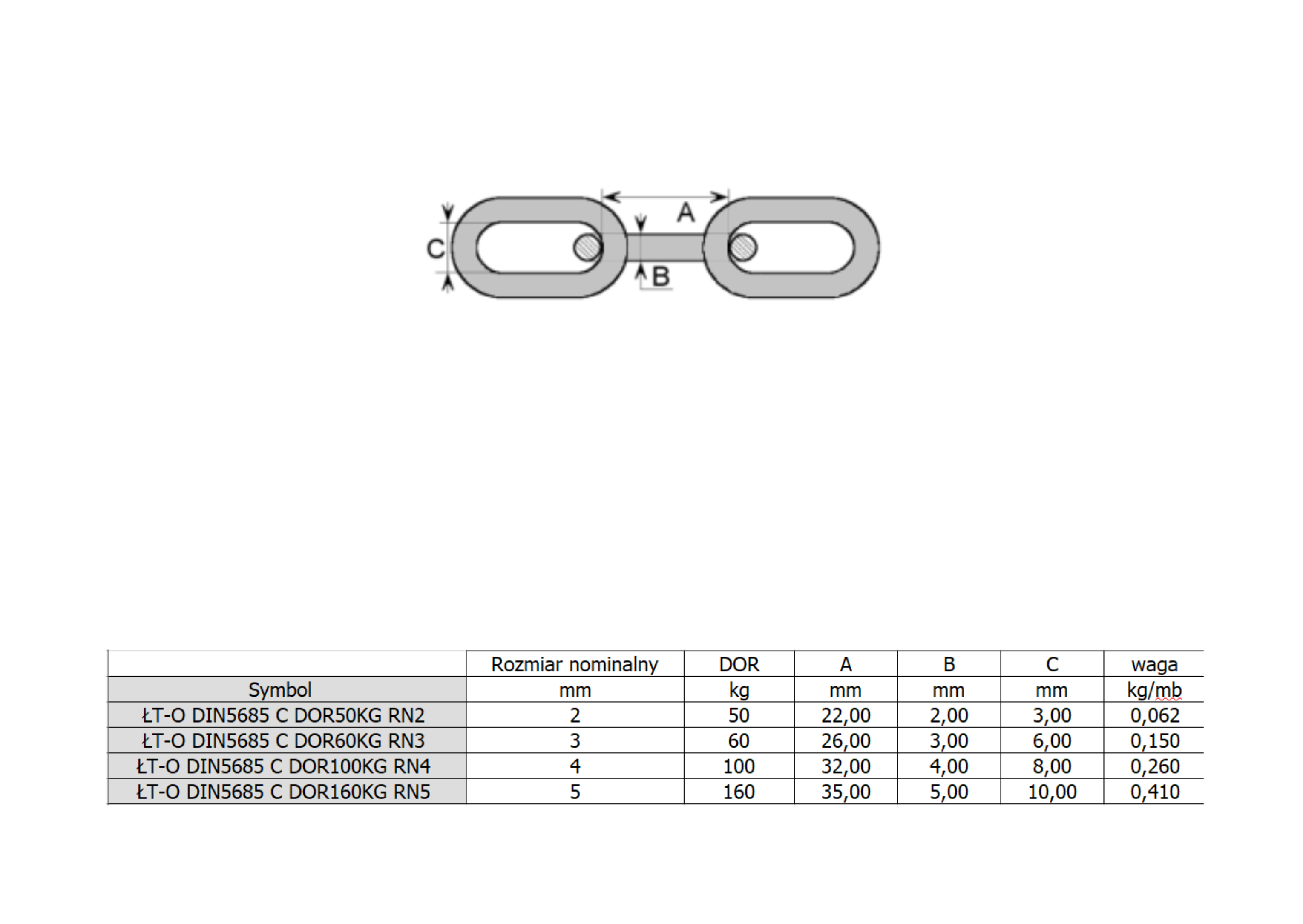 Charakterystyka łańcucha technicznego DIN 5685C z ogniwem długim:
