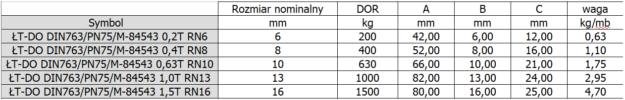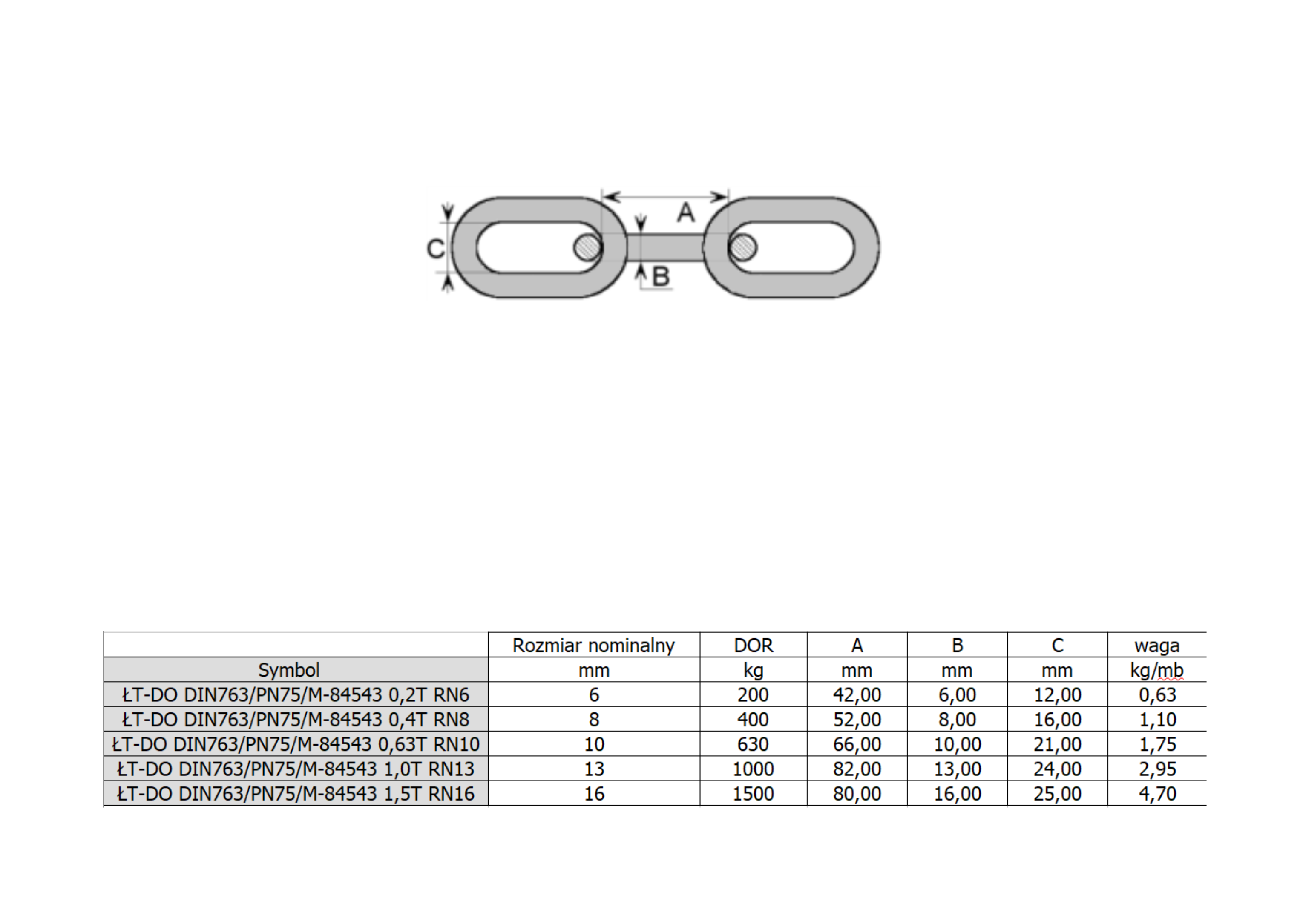 Charakterystyka łańcucha technicznego DIN 763 z ogniwem długim: