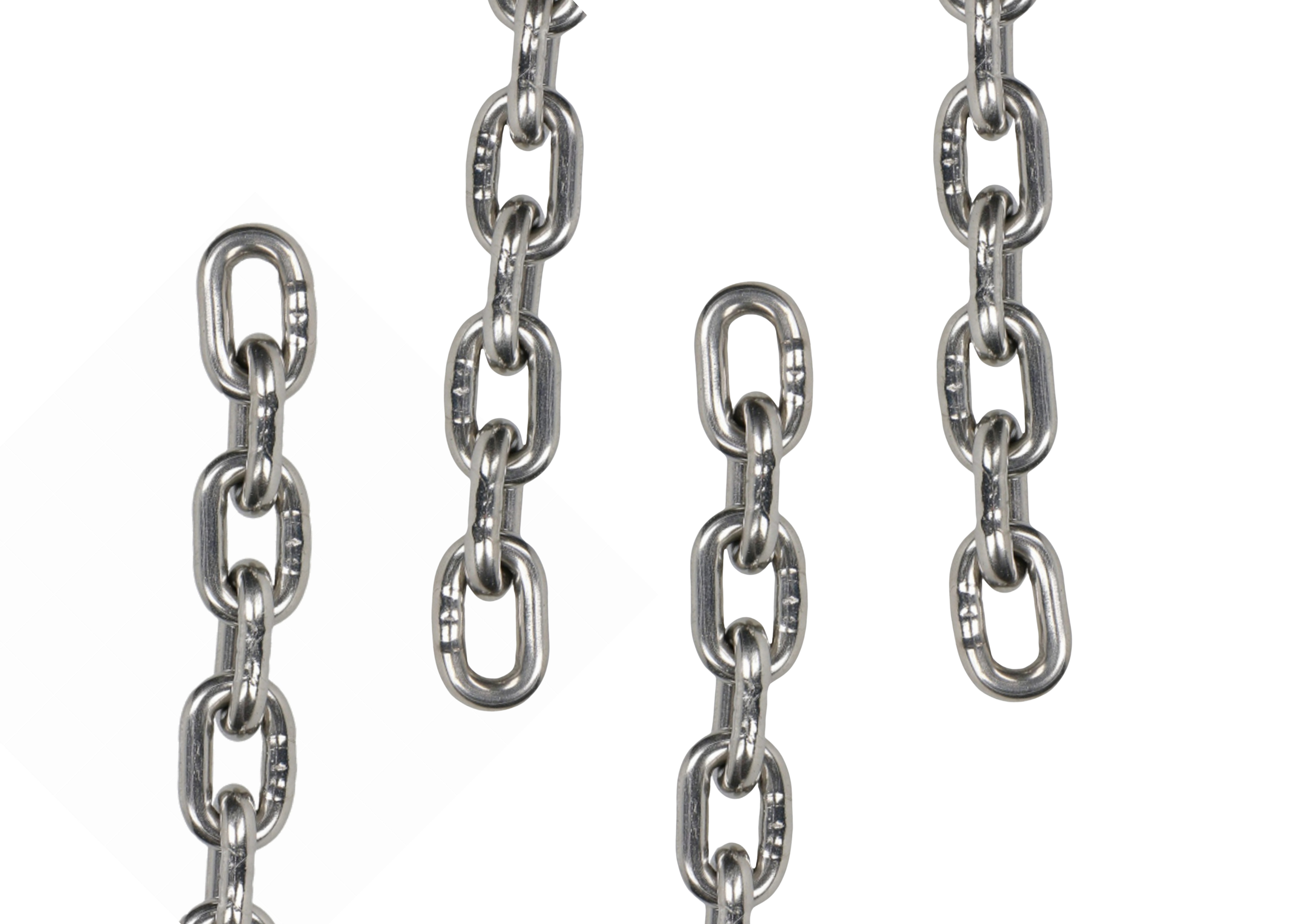 Stal nierdzewna sprawia, że łańcuch jest odporny na działanie wody morskiej i soli, co czyni go idealnym do stosowania w systemach kotwicznych, wciągarkach, cumowaniach czy innych aplikacjach na statkach i portach. -