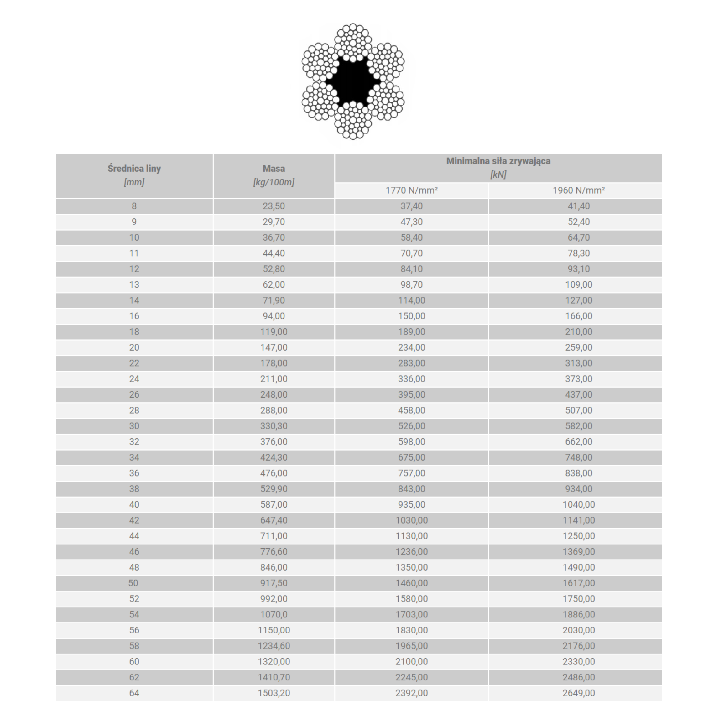 Dostępność liny w średnicach od 8,0 mm do 64,0 mm umożliwia dopasowanie jej do różnych zastosowań i specyfikacji technicznych.