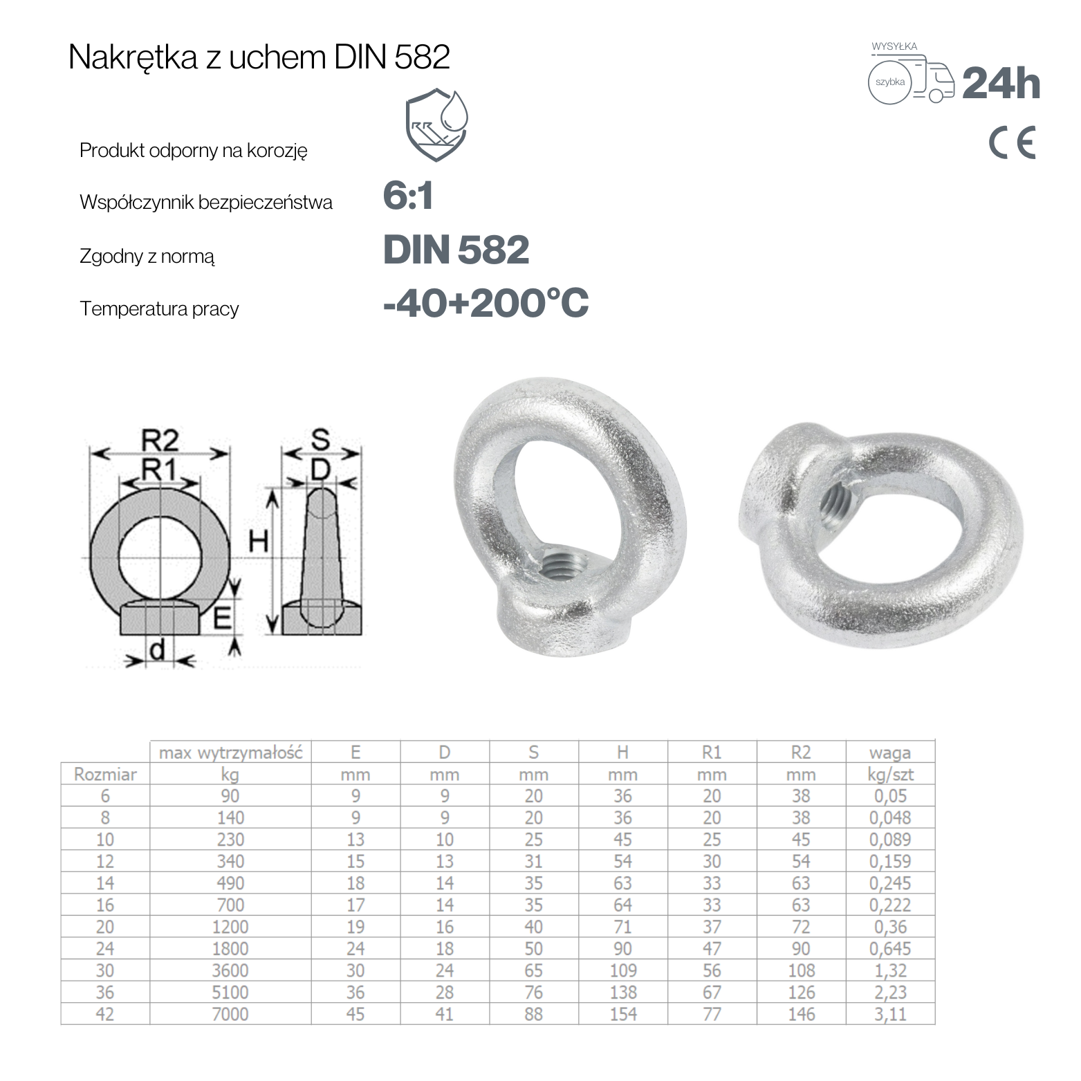 - Wytrzymałość i bezpieczeństwo: Nakrętka z uchem DIN 582 jest zaprojektowana z myślą o długotrwałym i bezpiecznym użytkowaniu. Spełnia surowe normy bezpieczeństwa, co sprawia, że jest niezawodna w nawet najbardziej wymagających aplikacjach.