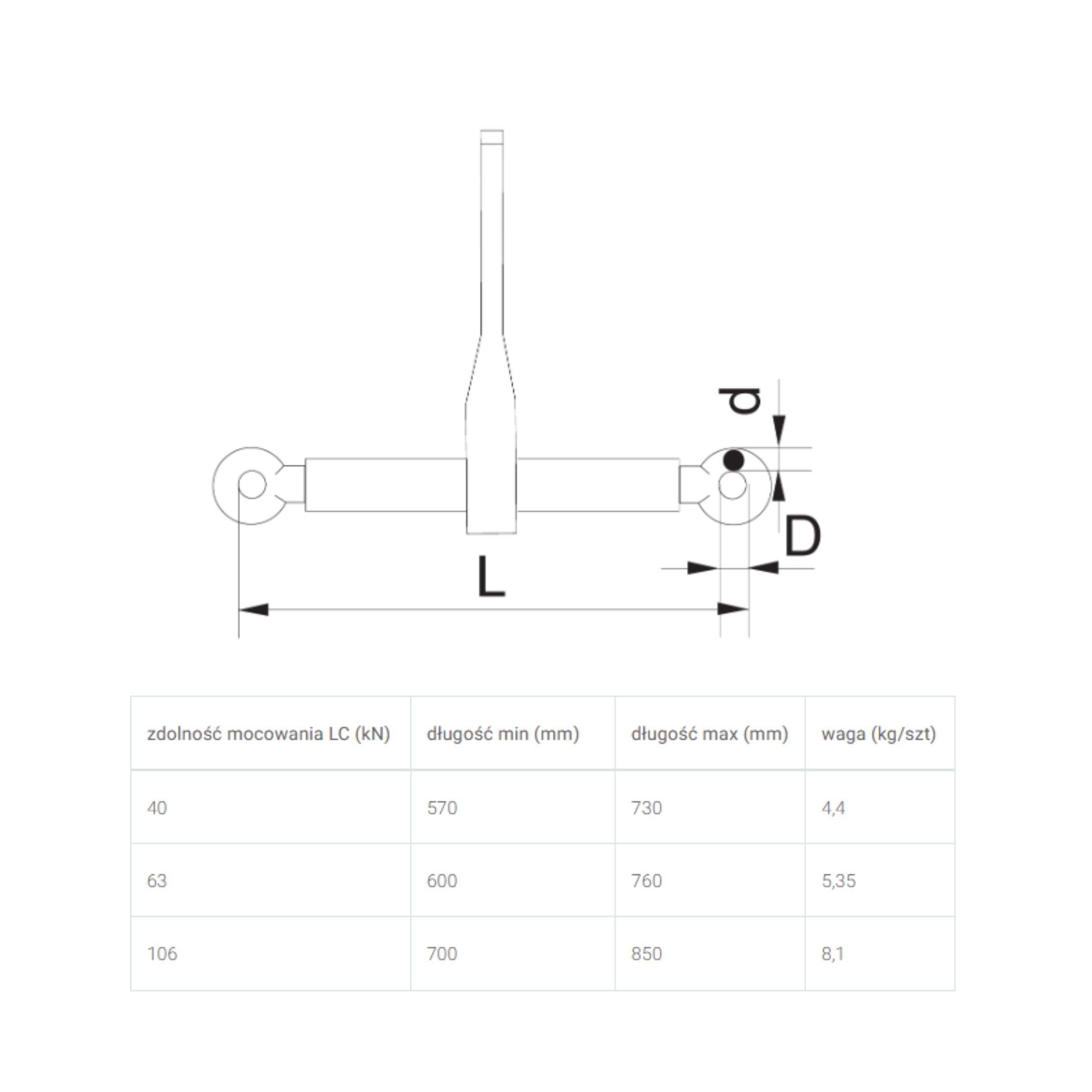 Napinacz Grzechotkowy bez Haków – Klasa 8 LC 63kN 6,3T