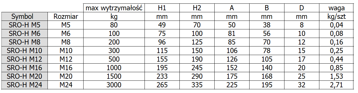 | Wytrzymałość śruby w kilogramach | 500 |