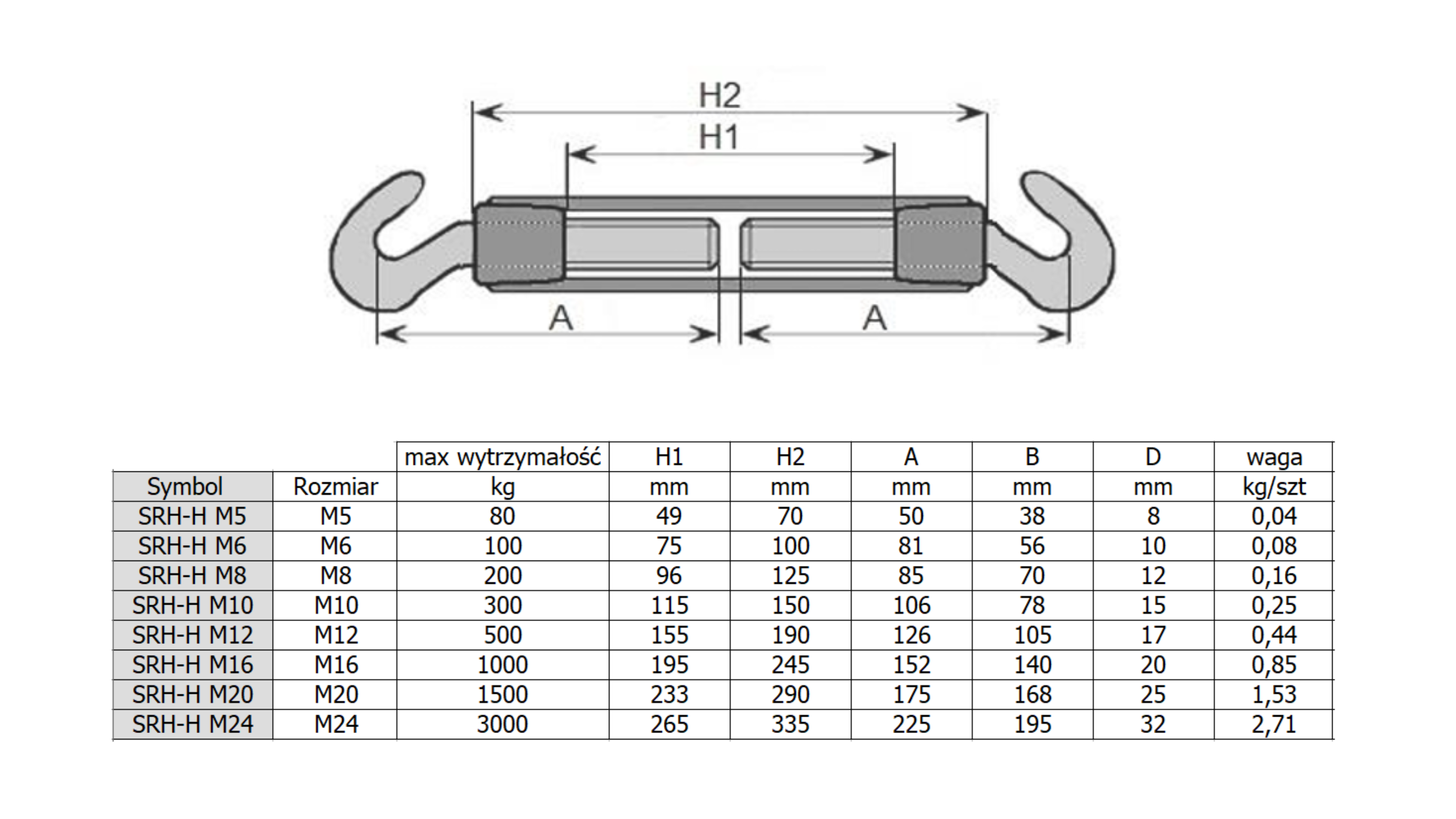 Śruba rzymska M16 ocynkowana Hak-Hak H/H - wytrzymałość do 1000kg