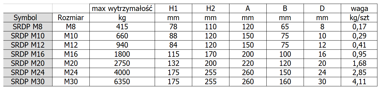 | Wytrzymałość śruby w kilogramach | 2750 |