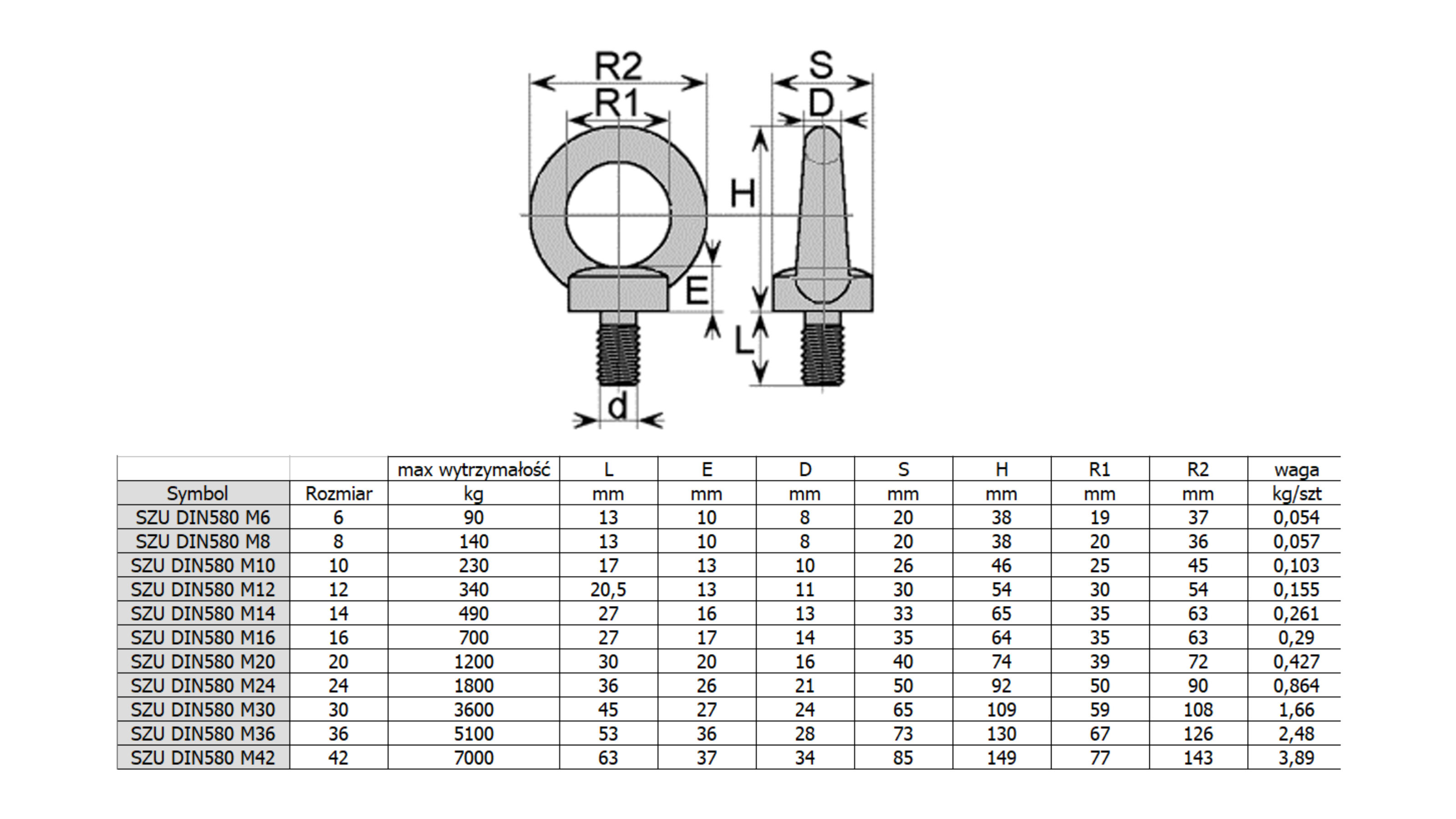 - Konstrukcja: Ucho śruby ma gładką, zamkniętą formę, co pozwala na bezpieczne zaczepienie haków, lin, łańcuchów lub innych elementów mocujących.