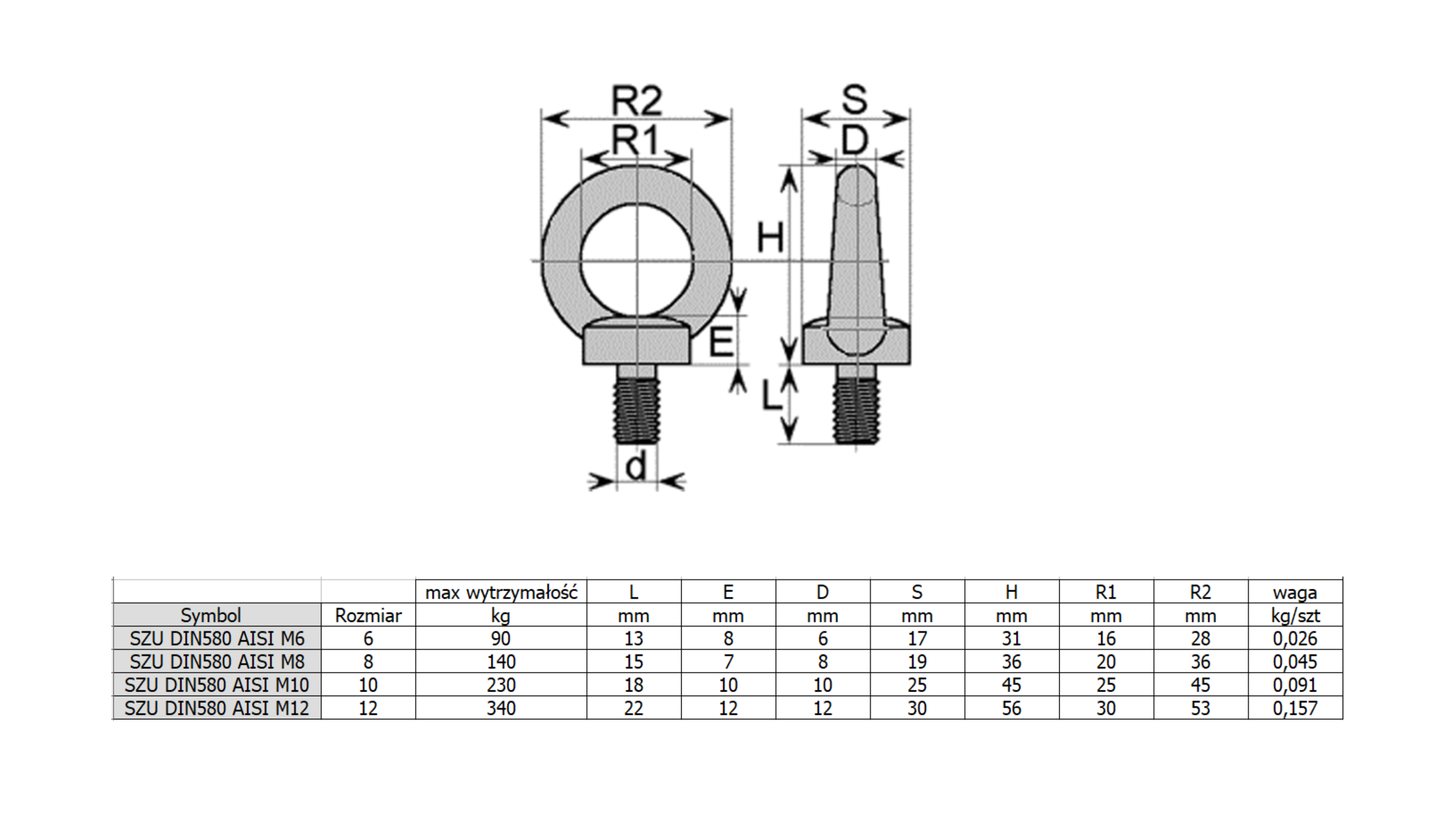 Śruba z uchem stal nierdzewna M12 wytrzymałość do 340 kg