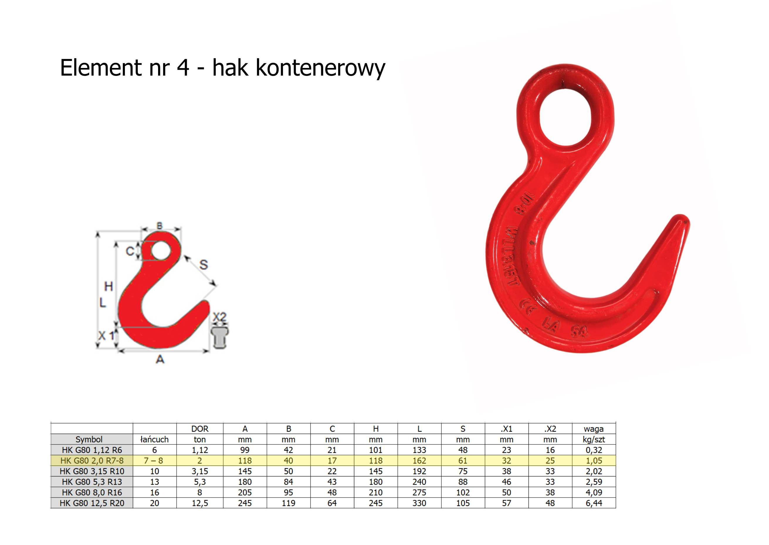 | Zawiesie z | hakiem kontenerowym |