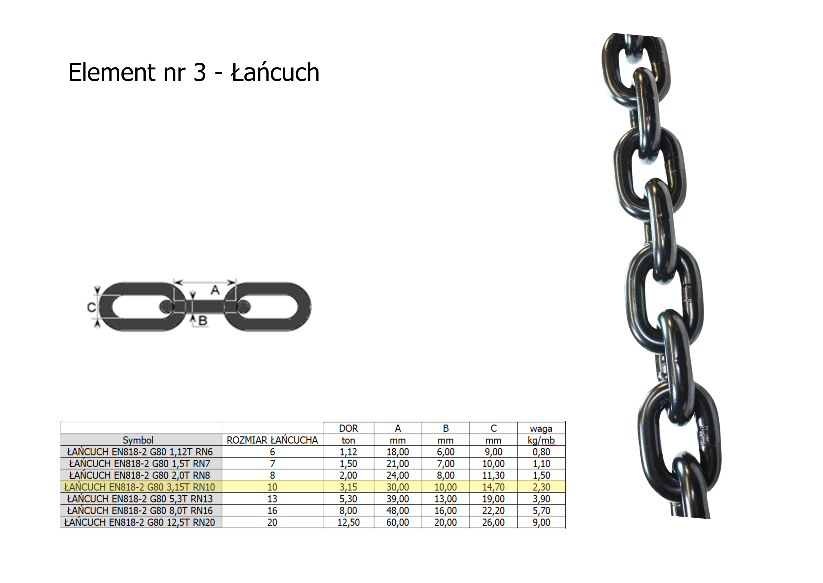 Średnica łańcucha 10 mm