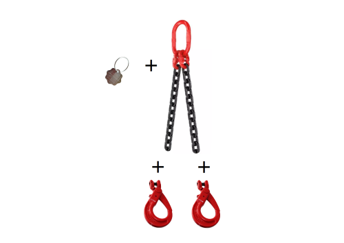 Zawiesie łańcuchowe 2-cięgnowe składa się z kilku kluczowych elementów: