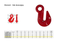 - Hak roboczy – na końcu zawiesia, którym bezpośrednio chwyta się podnoszony ładunek (dostępne kilka wariantów).