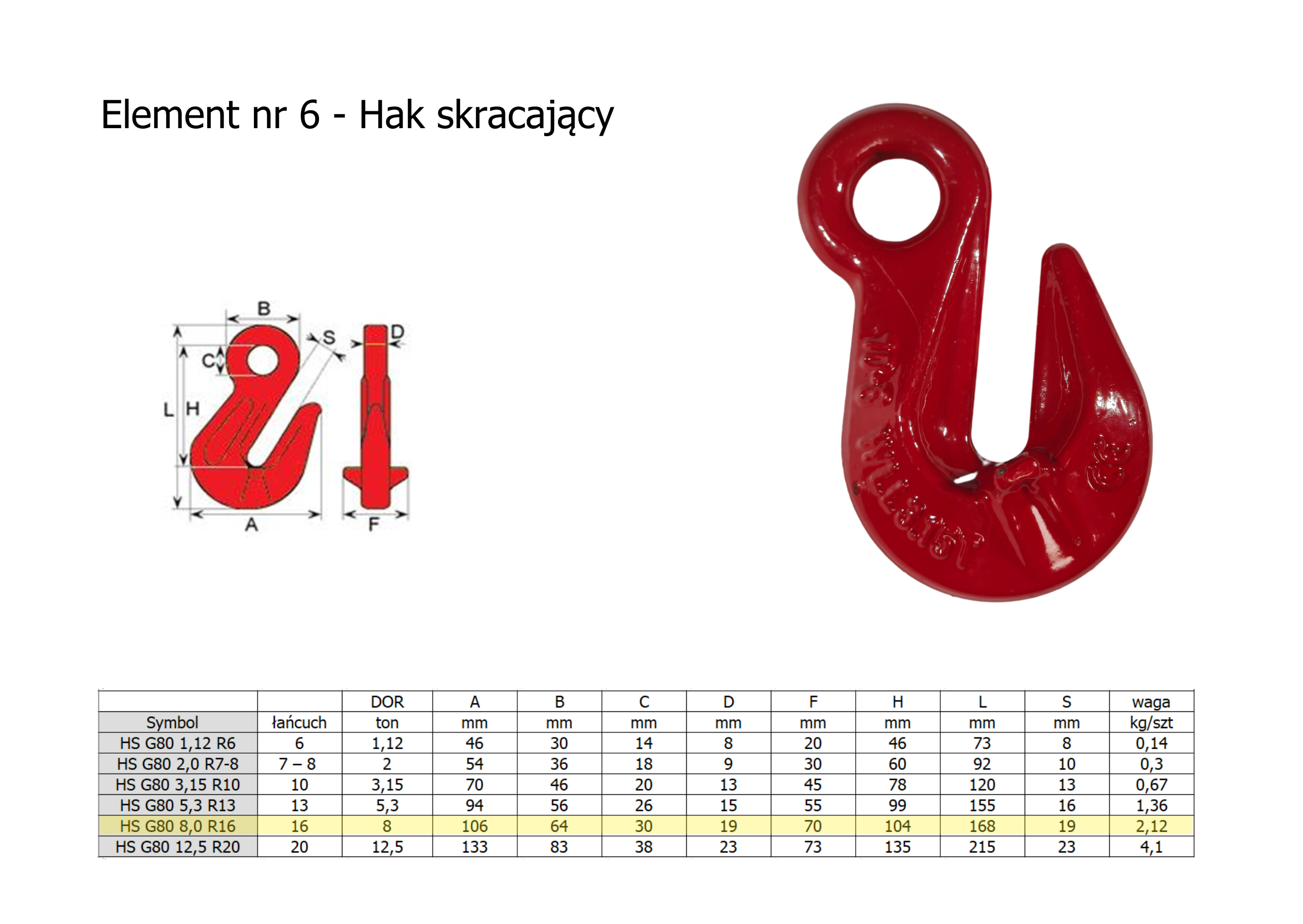 Hak skracający 8 ton PN-EN1677-1 - 2 sztuki
