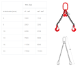 Zawiesia łańcuchowe 2-cięgnowe mogą mieć różne dopuszczalne obciążenia robocze (WLL - Working Load Limit) w zależności od klasy łańcucha i jego średnicy: