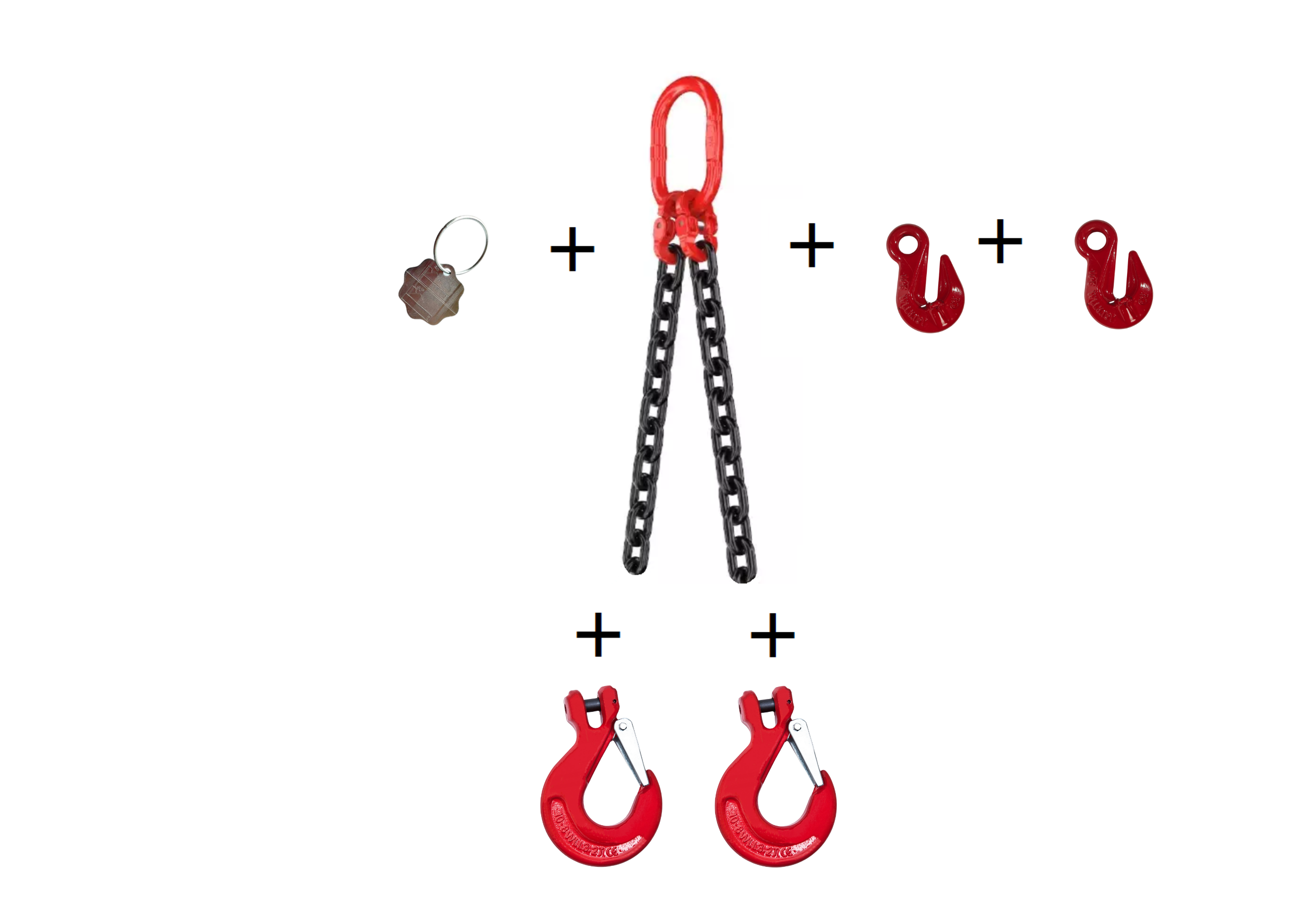 Zawiesie łańcuchowe 2-cięgnowe składa się z kilku kluczowych elementów: