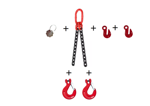Zawiesie łańcuchowe 2-cięgnowe składa się z kilku kluczowych elementów: