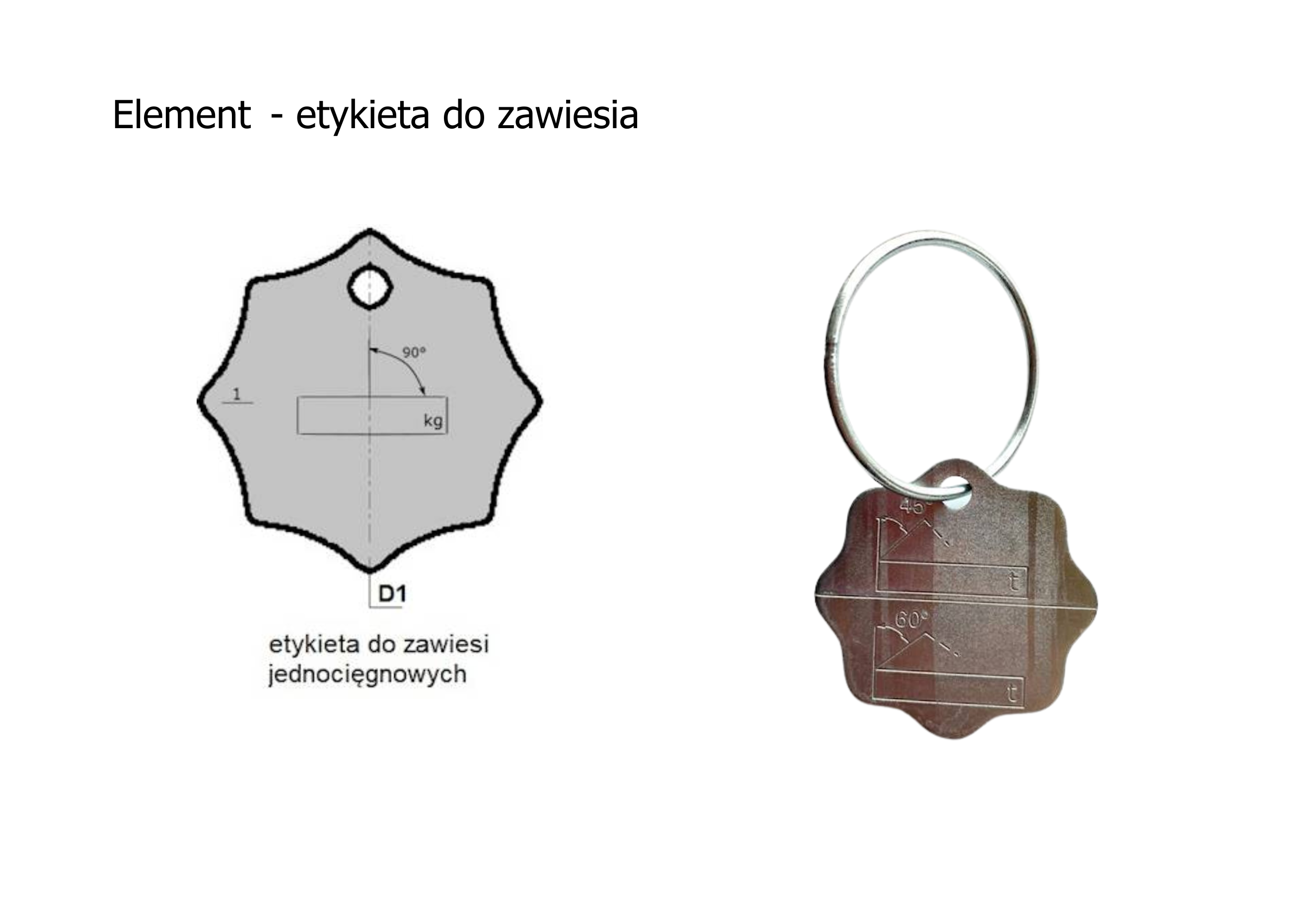 - Hak roboczy – na końcu zawiesia, którym bezpośrednio chwyta się podnoszony ładunek (dostępne kilka wariantów).