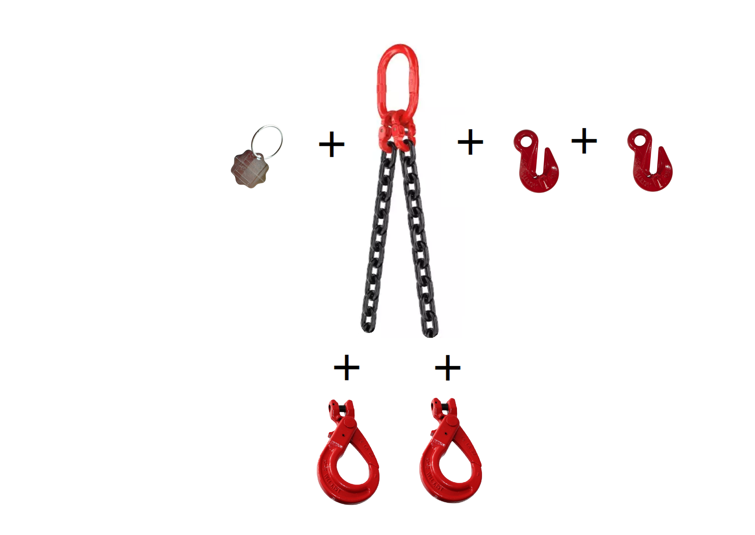 Zawiesie łańcuchowe 2-cięgnowe składa się z kilku kluczowych elementów: