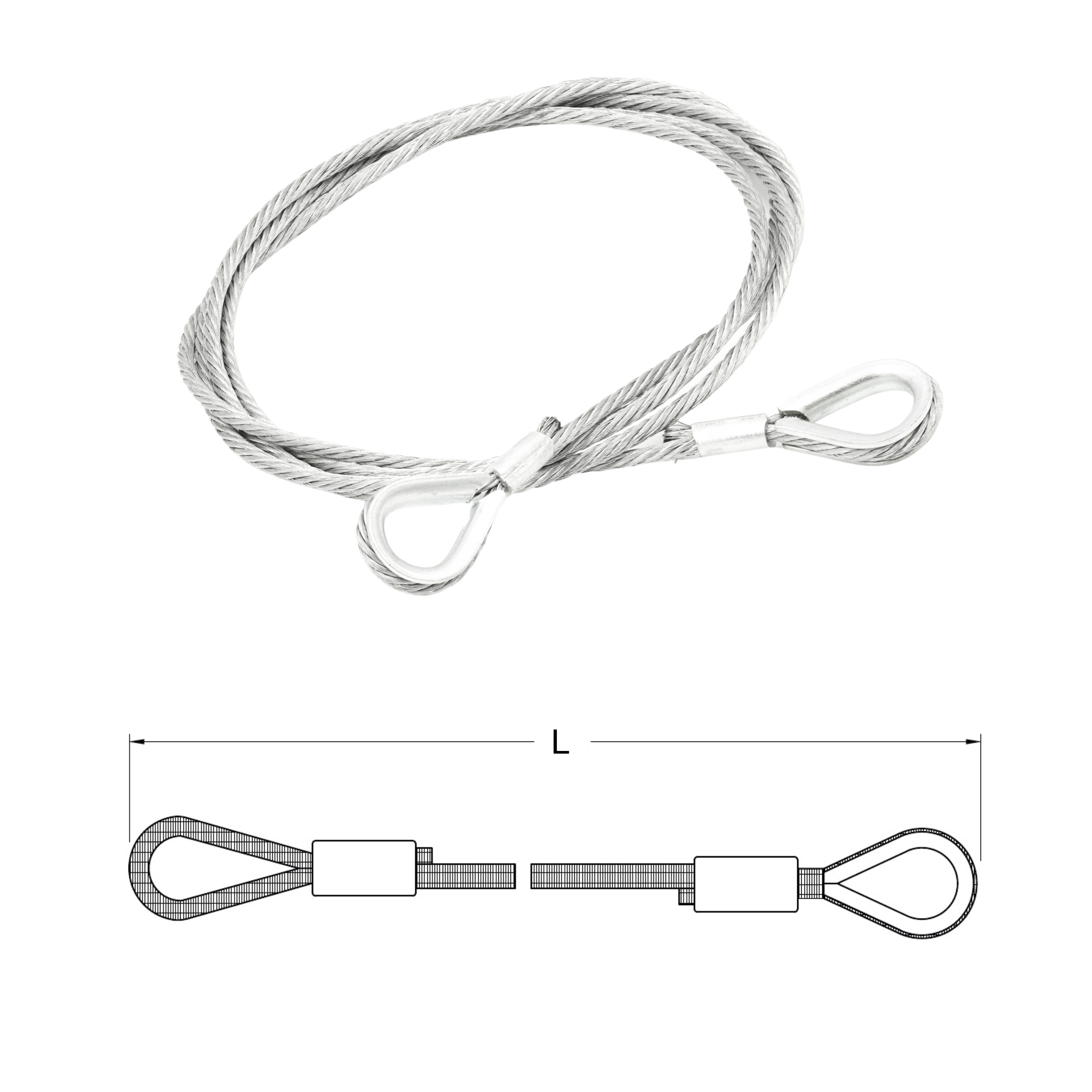 Rodzaj zakończeń: oba końce liny zakończone kauszami stalowymi, co wzmacnia pętle, chroniąc je przed przetarciem i zwiększając trwałość zawiesia.