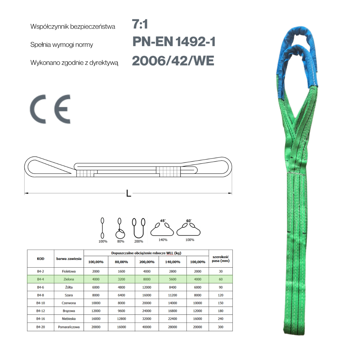 Zawiesie pasowe 4T 60mm 1,5 m z pętlami typ B4