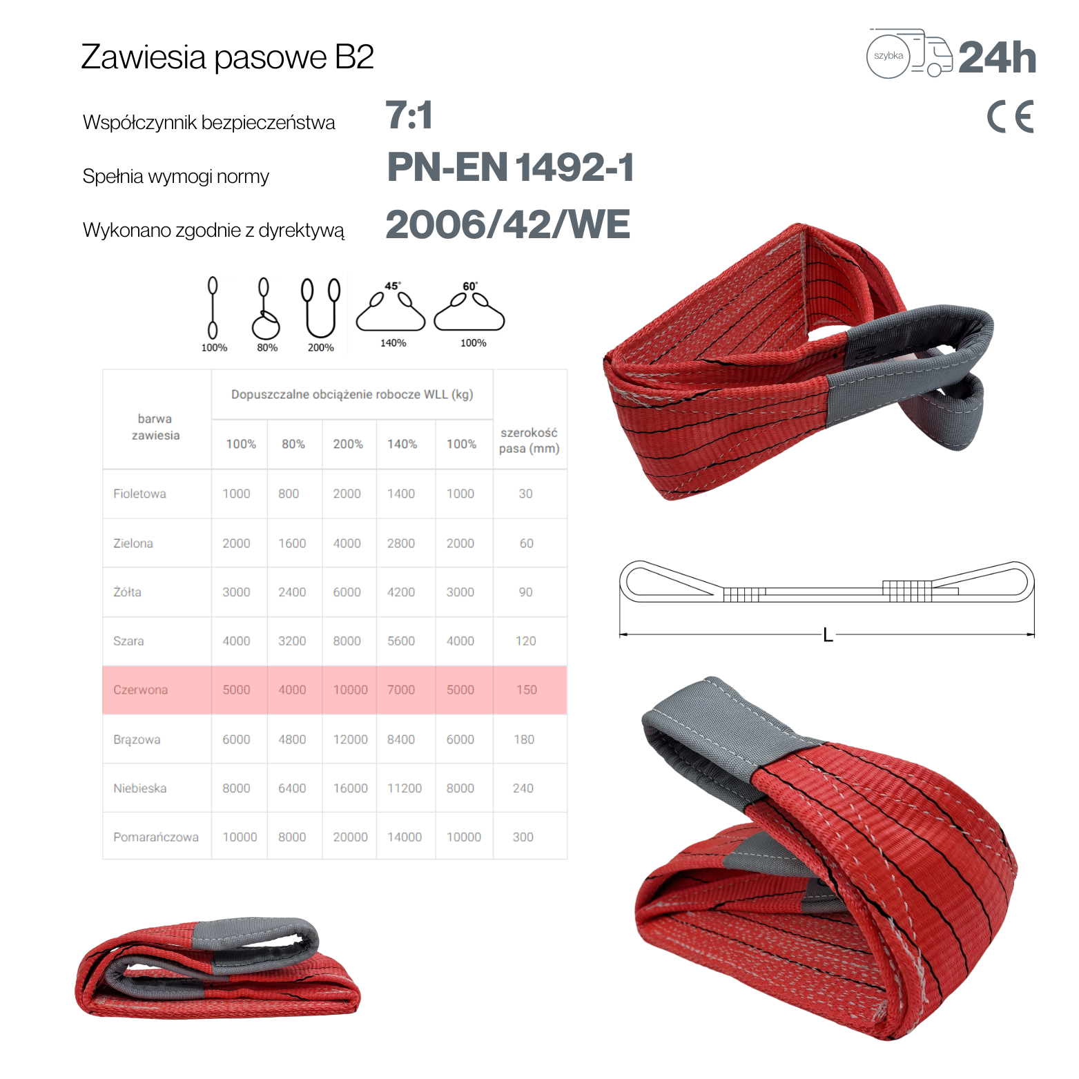 - Bezpieczeństwo: Zgodność z normą PN-EN 1492-1 oraz wysoki współczynnik bezpieczeństwa zapewniają niezawodność i ochronę podczas użytkowania.