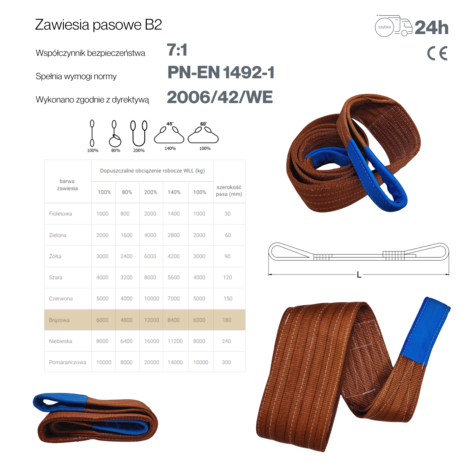 - Bezpieczeństwo: Zgodność z normą PN-EN 1492-1 oraz wysoki współczynnik bezpieczeństwa zapewniają niezawodność i ochronę podczas użytkowania.