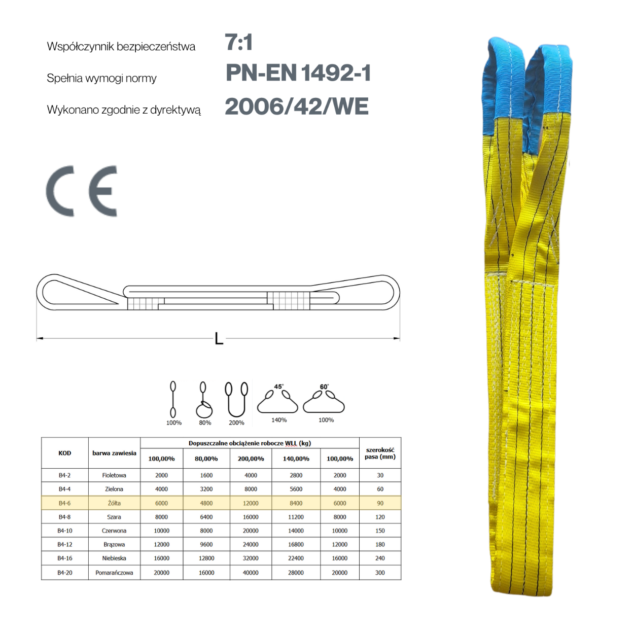 - Bezpieczeństwo: Zgodność z normą PN-EN 1492-1 oraz wysoki współczynnik bezpieczeństwa zapewniają niezawodność i ochronę podczas użytkowania.