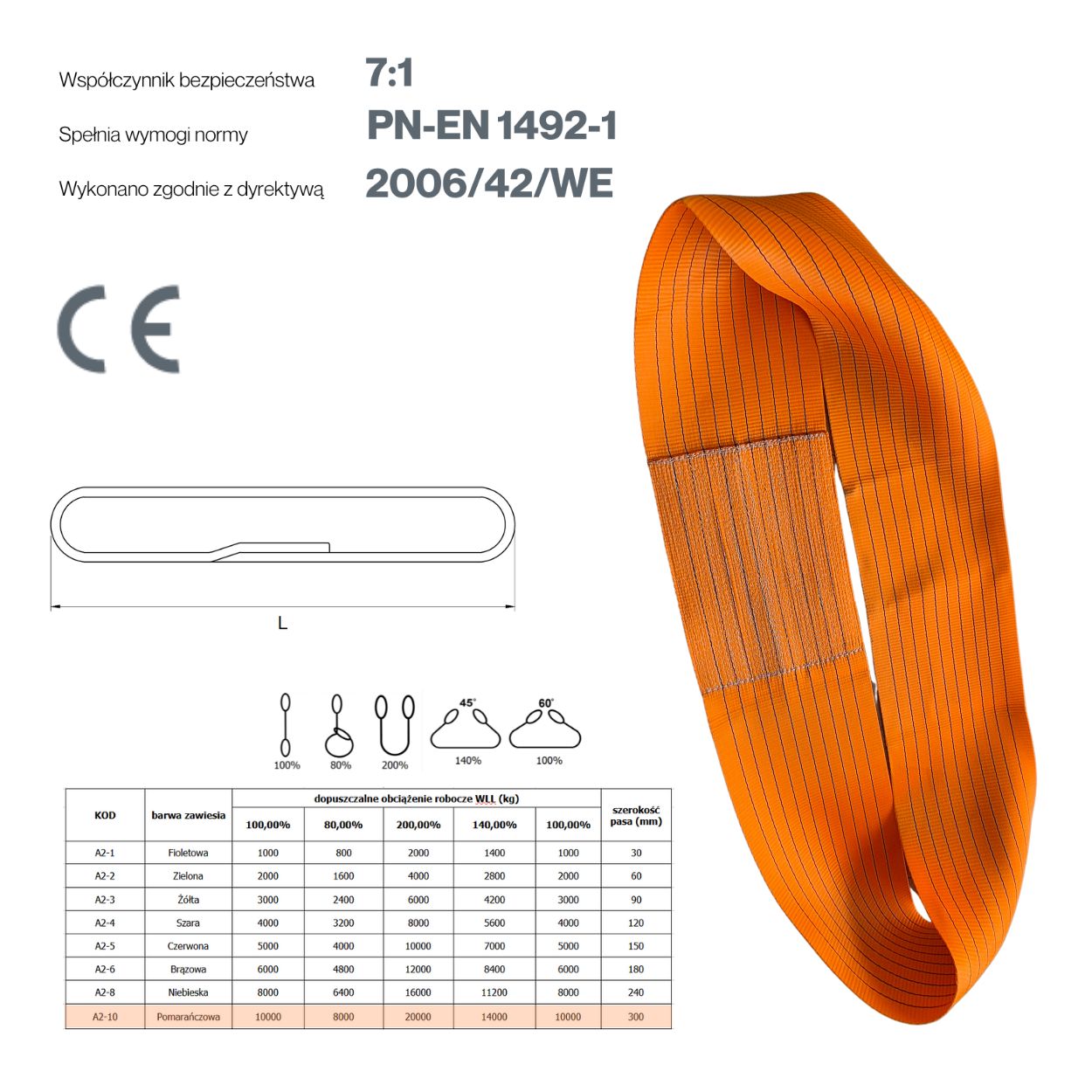 Typ: Zawiesie pasowe bezkońcowe typu A2